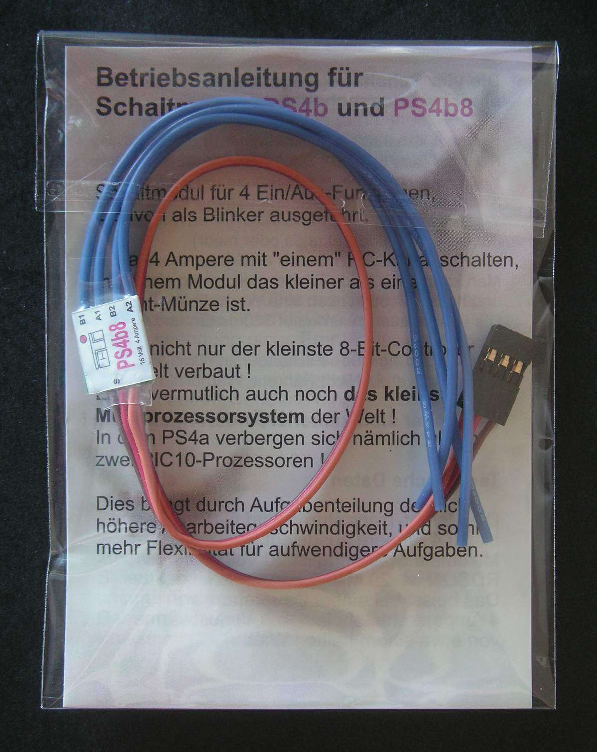 Memoryschalter PS4b8 mit 4x 4A-Ausgang 4x Ein/Aus-Funktion auf 1 RC-Kanal 2 Ausgänge als Blinker.Max. Spannung 20V 13x15x2,5mm, CTI-Produkt, 8xBlink-Absch.