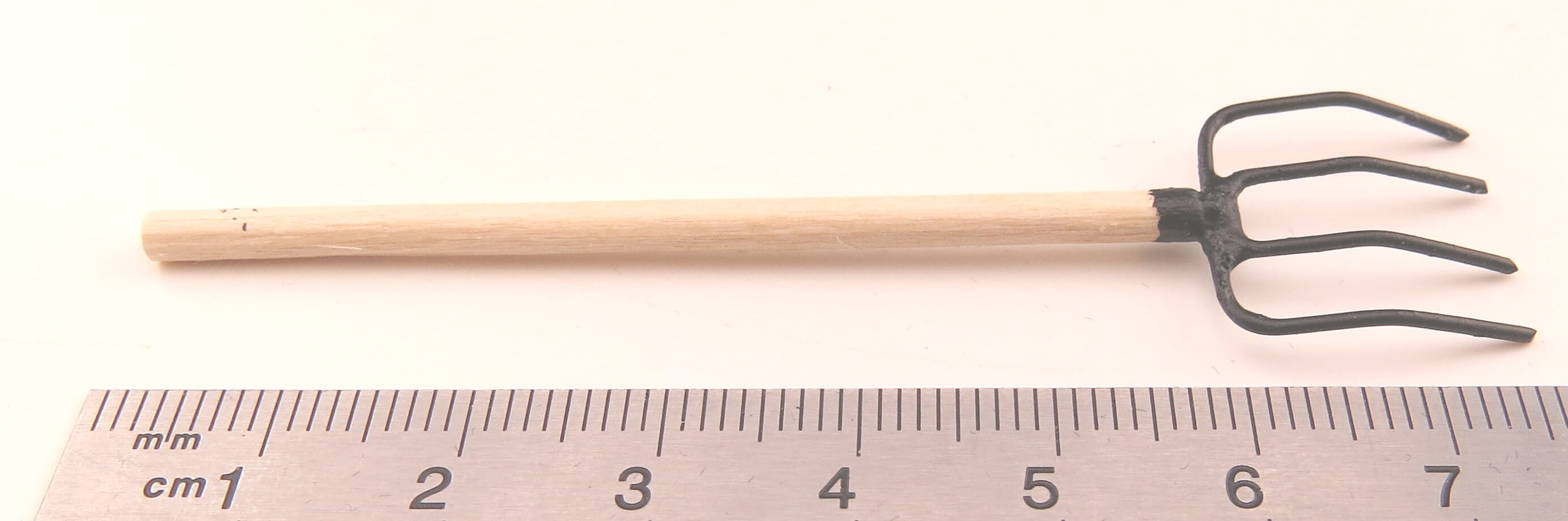 1 Mist-Gabel 4 Zinken schwarz, 7,5cm. Mit Holzstiel. Zinken schwarz.