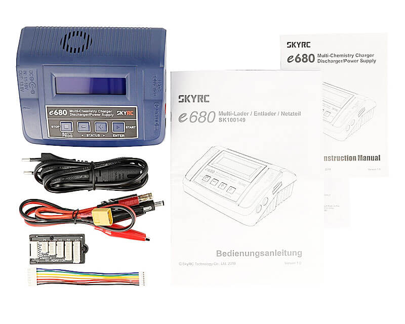 Ladegerät e680 Anschlusskabel 12V + Netzkabel EU XH Balancer Adapterboard für 2 - 6 Zellen Anleitung und Ladekabel mit XT-60 Stecker