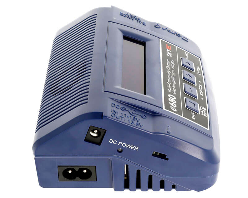 Kompaktes Microprozessorgesteuertes Schnell-Lade-Entladegerät mit Balancerfunktion und eingebautem Netzteil. Für den mobilen Einsatz kann das Gerät an einer 12V Autobatterie oder anderer Gleichstrom-Stromquelle mit einer Spannung zwischen 11 bis 18V betrieben werden. Die verbesserte Version des e660 Laders ist der SkyRC e680 für alle gängigen Akkutypen geeignet: LiPo, Li-ion, LiFe, NiCd, NiMH, PB und auch die neue Generation LiHV mit Endspannung 4,35V. Erhöhte maximale Ladeleistung von 80W und 8A Ladestrom. Auch die Entladeleistung wurde verdoppelt. Insbesondere unterstützt das e680 Ladegerät das Laden von DJI Mavic Akkus mit maximal 4 A Ladestrom.
