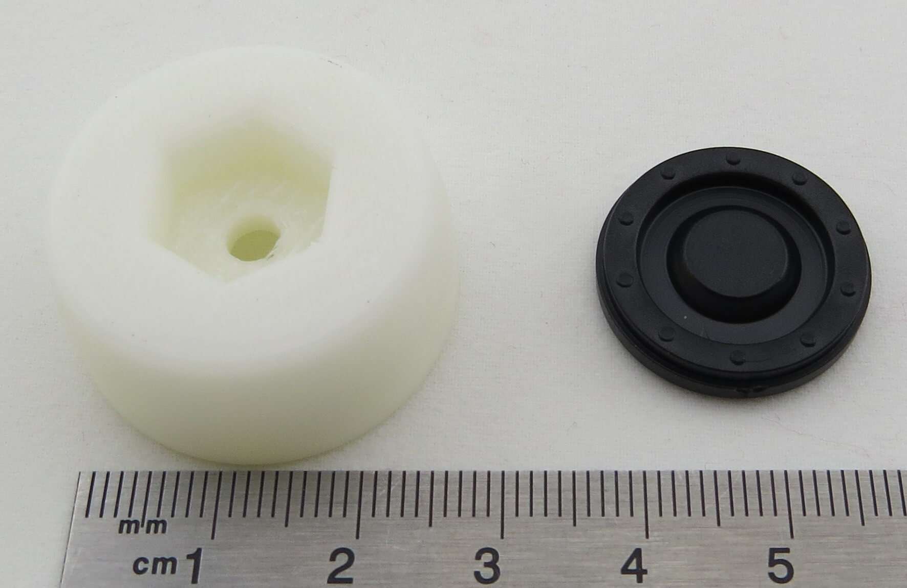 Nabe angetrieben Vorderachse, V1 mit Innensechskant 12mm TAM. Lochkreis 25mm. 10 Löcher für M1,6, schwarz/weiß ABS. Nabe 3D Druck, Deckel Spritzguss. Passt zur angetriebene Carson-Lenkachse.