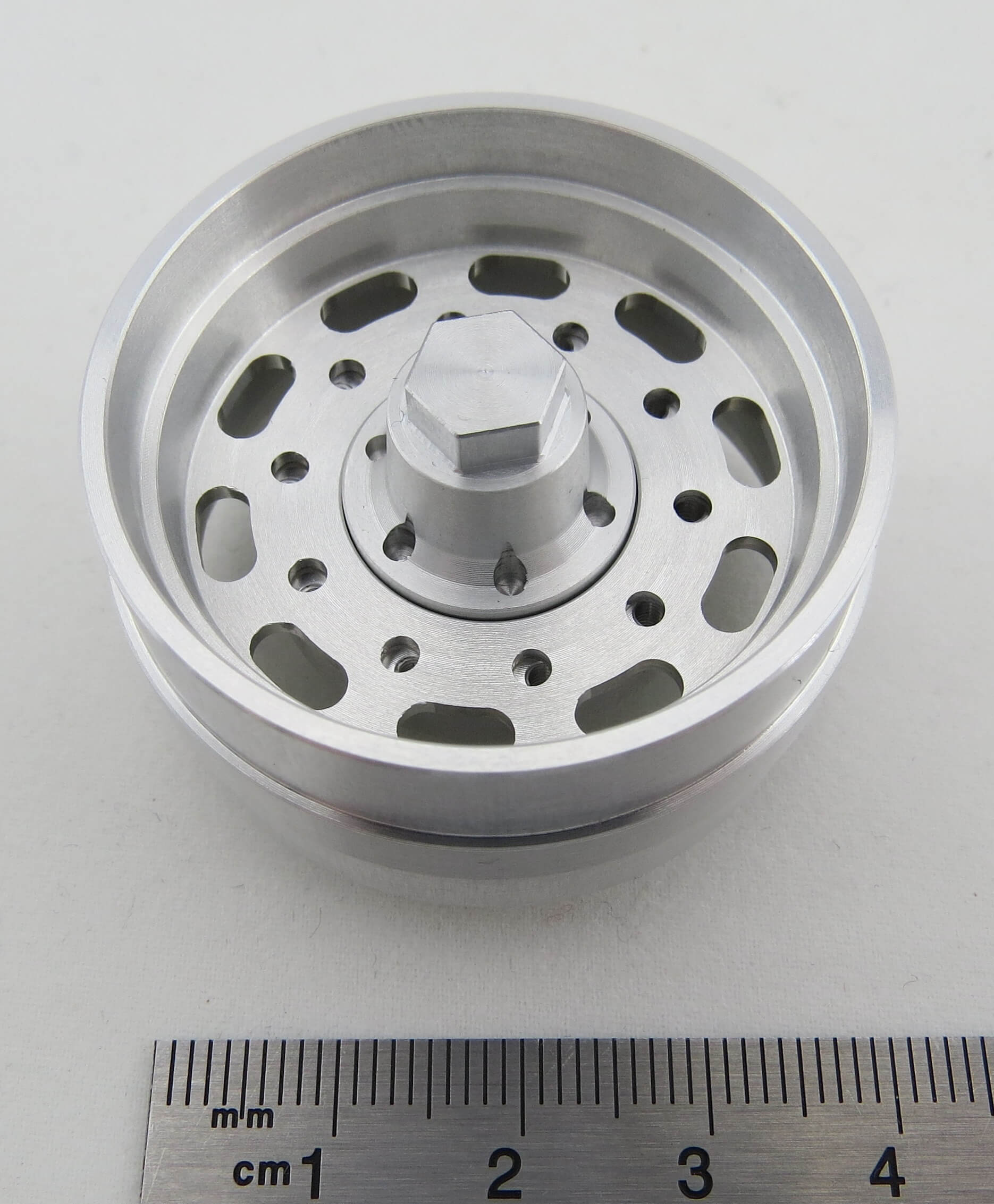 1 Naben-Deckel, Alu natur mit Dom und 6kant-Abschluß. Durchmesser 18mm. Gesamtlänge 14mm. Passend zur Alu-Nabe 10953 (nicht enthalten).