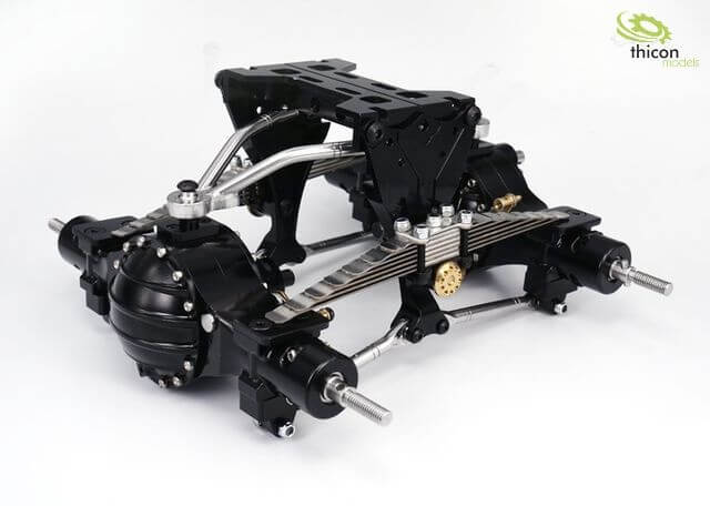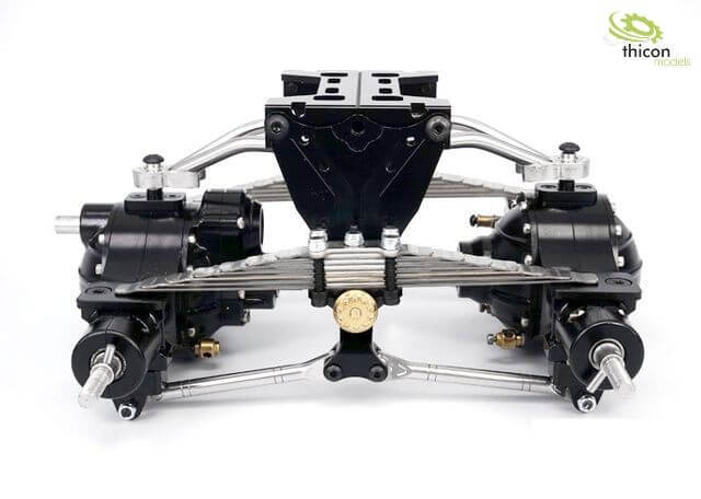 Pendelfederung passt an alle LESU-Fahrwerke und Tamiya-Rahmen. Auch die selbstsperrenden Carson-Achsen (Artikel 10031) passen an dieses Pendelsystem.