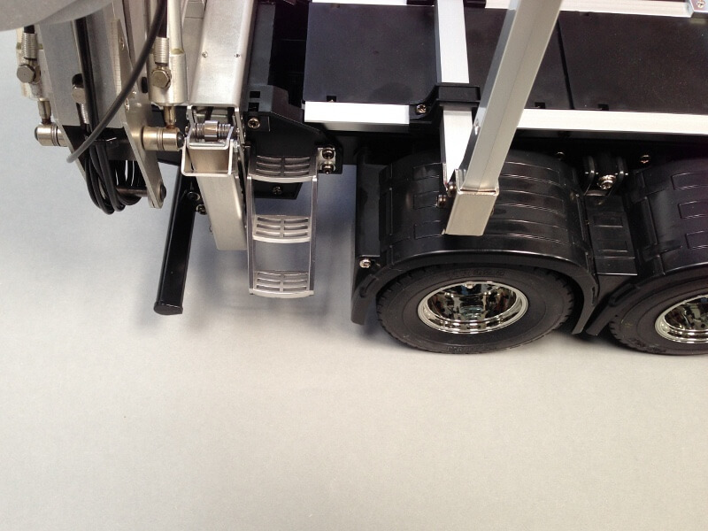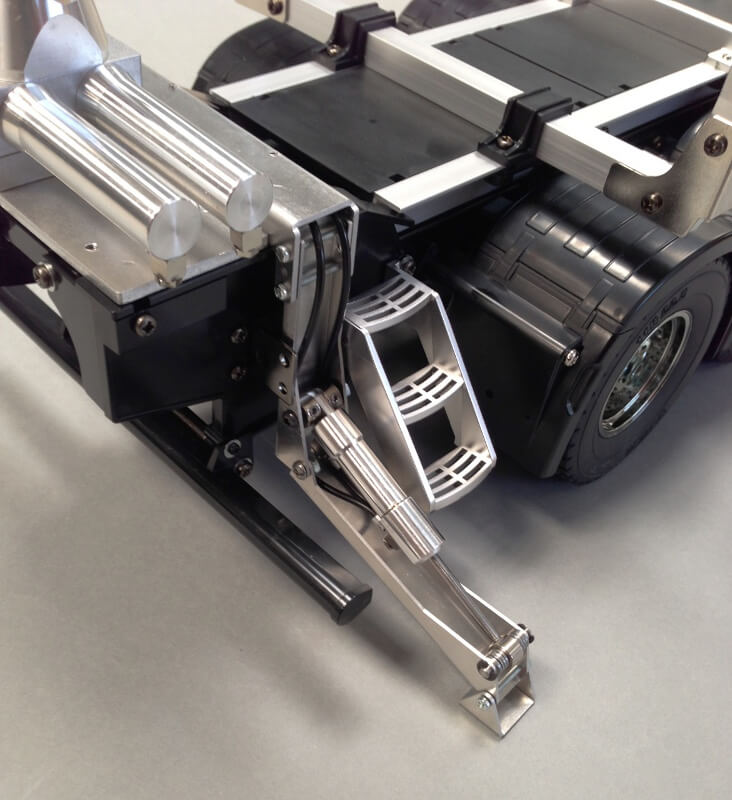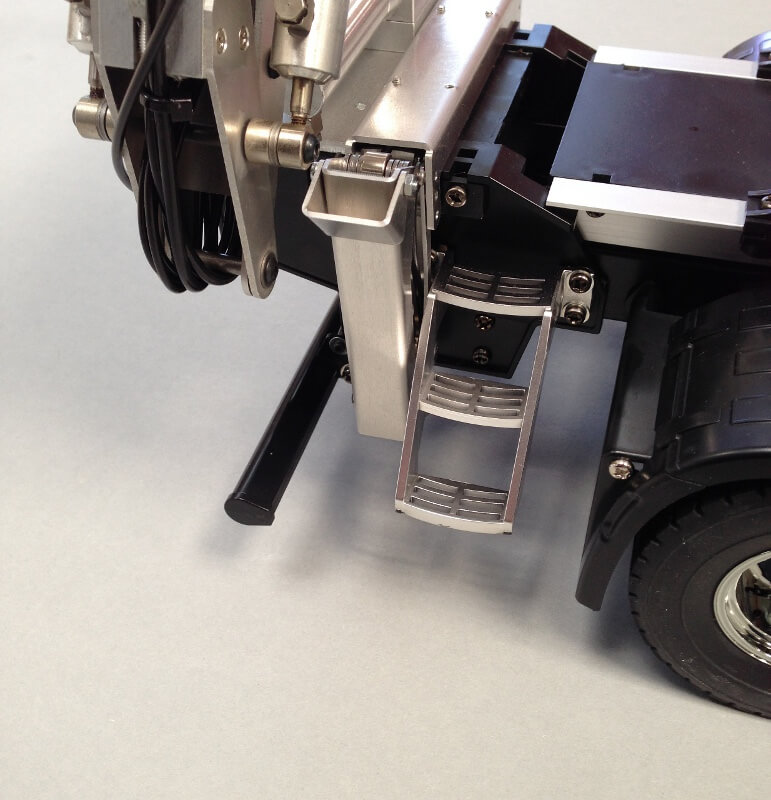 Genau wie die Variante mit der "Standard" Abstützung enthält Bausatz eine eigens für dieses Modell angefertigte Befestigungsplatte für den Kran und die Abstützung, womit diese einfach durch Klemmbefestigung (ohne Bohren) auf dem LKW befestigt werden können.