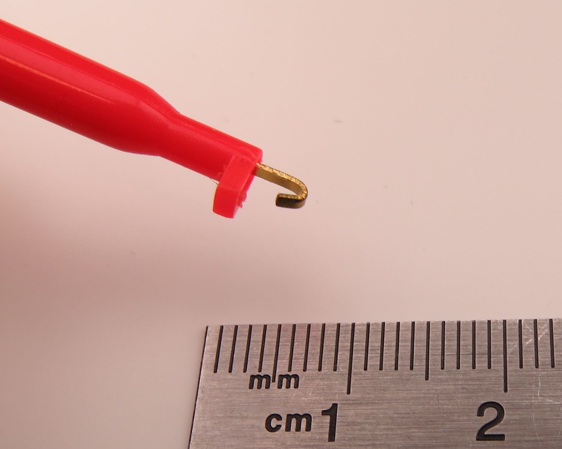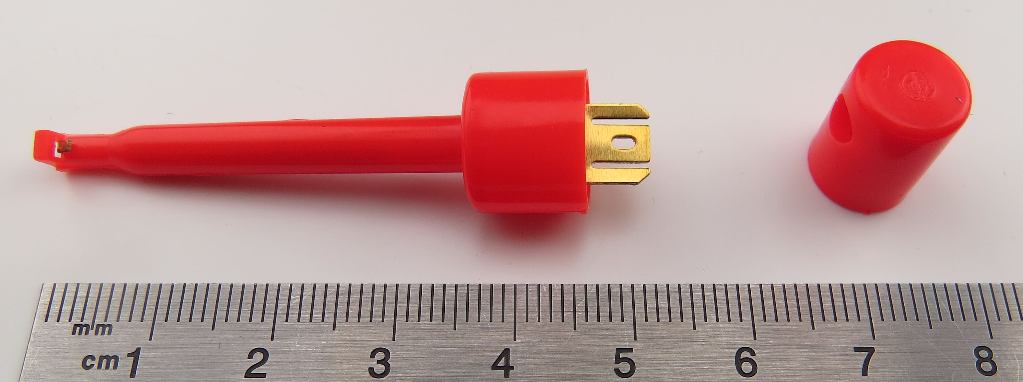 Produktinformationen "Prüfclip mit Haken (federnd) ROT. Ausführung, lötbar"