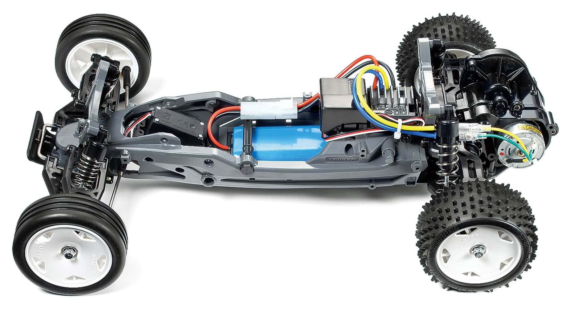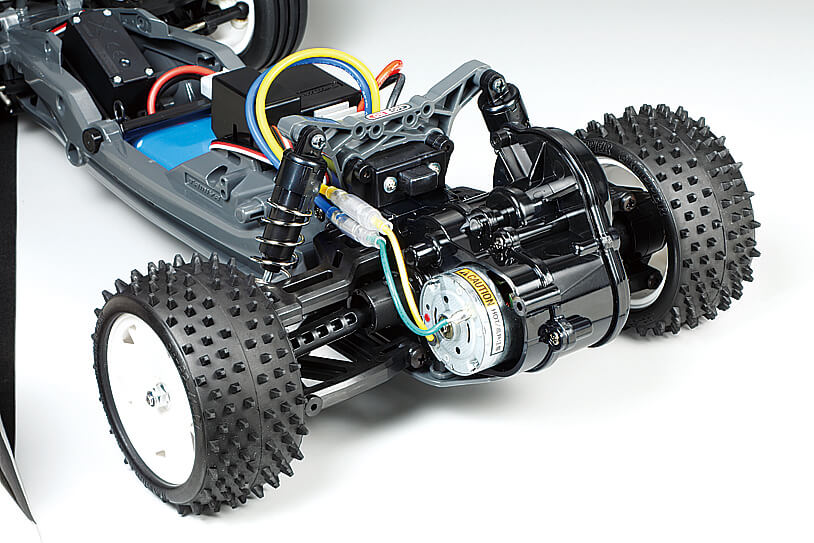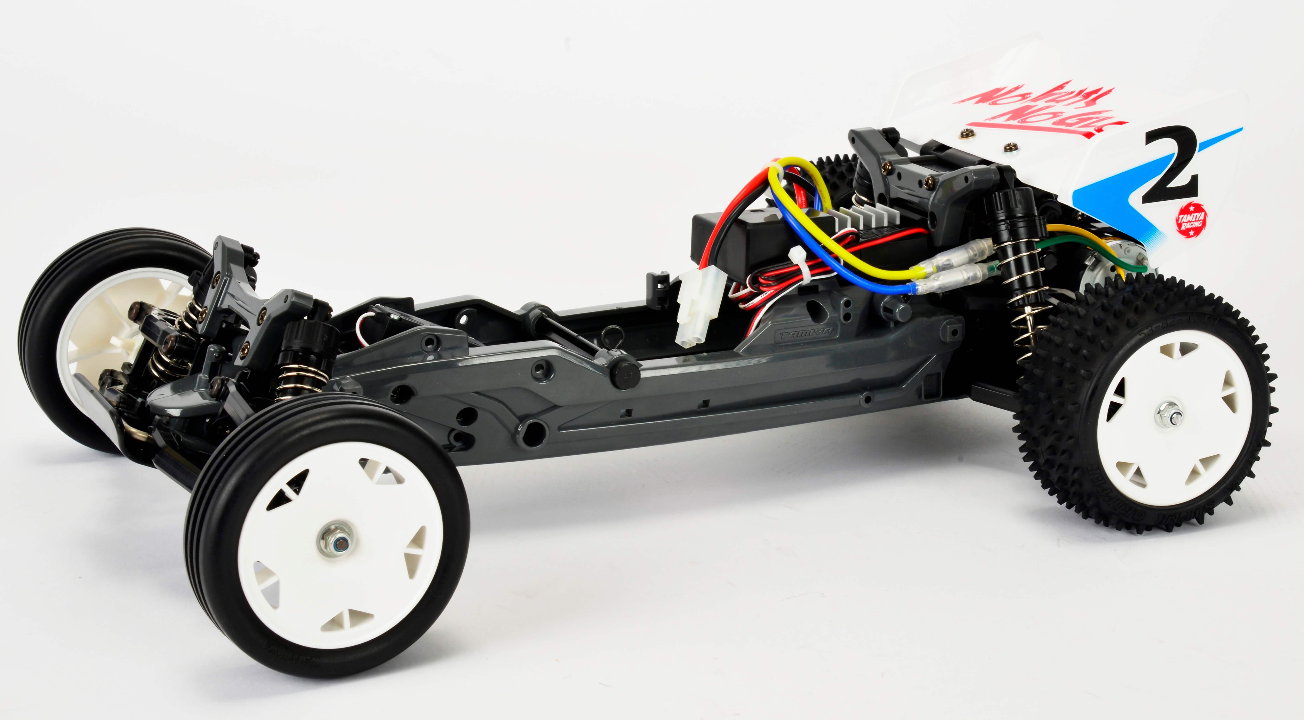 Der etwas über 1 kg schwere Neo Fighter im Maßstab 1:10 ist mit gut 40 cm etwas länger geworden und bietet dank des nun größeren Radstand noch mehr Spurtreue bei schnellen Fahrten. Sein schmales, fast röhrenförmiges DT-03 Chassis beinhaltet gut geschützt Elektronik und Mechanik. Einzelradaufhängung, Differenzial, Öldruckstoßdämpfer und die flexible Polykarbont-Karosserie, die Designelemente klassischer Modelle enthält, sind Serie. Highlight ist der elektronische Fahrregler.