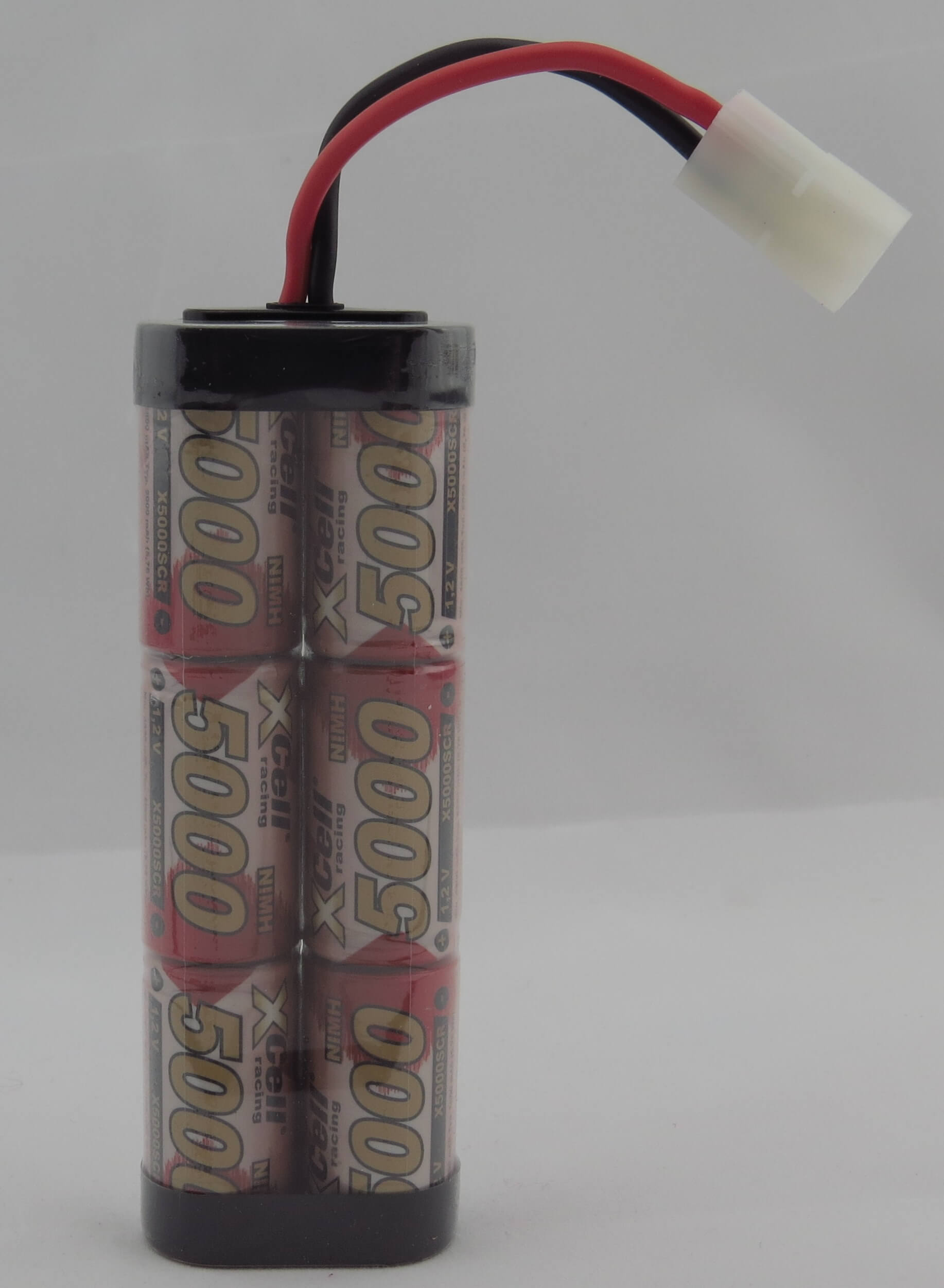1x Racing-Akku-Pack mit SUB-C-Zellen, 7,2V 6 Zellen, 5000mAh mit Tamiya-Steck. SUB-C-Zellen. Maße ca. 137x47x25mm. ca.430 gr., NiMH, Bauweise R3x2. Mit Silikon-Litzen!