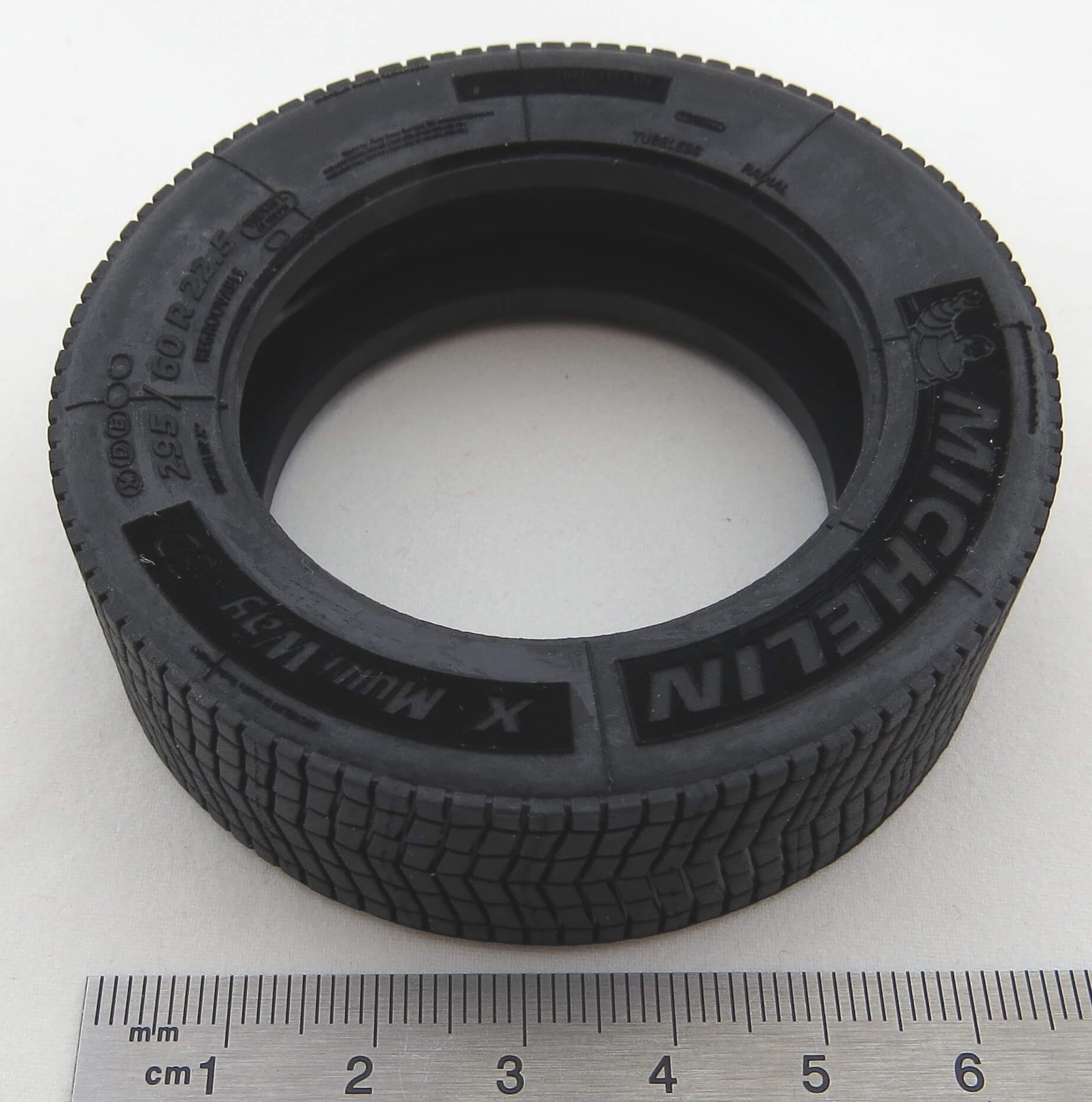 Reifen Michelin 295/60R22.5 X Multi Way. Formstabiler Lowliner-Hohlreifen. Außendurchmesser 71mm, innen 46mm, Breite 22mm. 1 Stück. Hochdetailierter Reifen für Antriebsachsen.