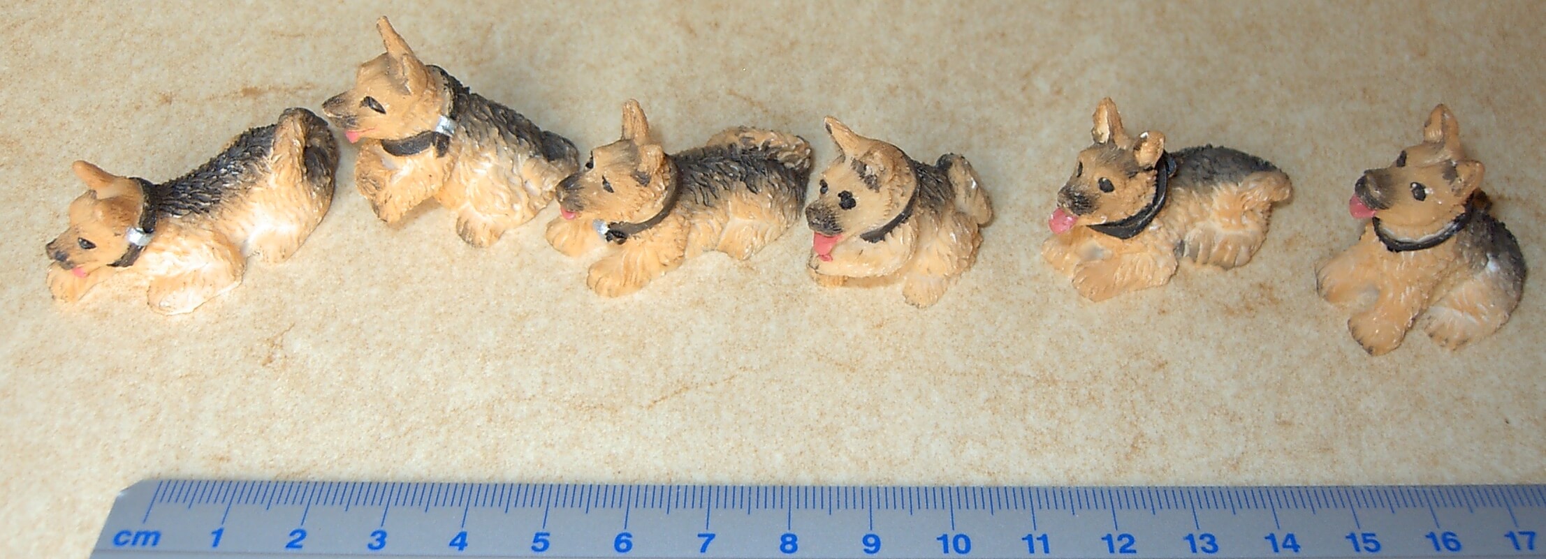 Produktinformationen "Schäferhund ca. 3-4cm hoch, verschieden Typen, bemalt, je "
