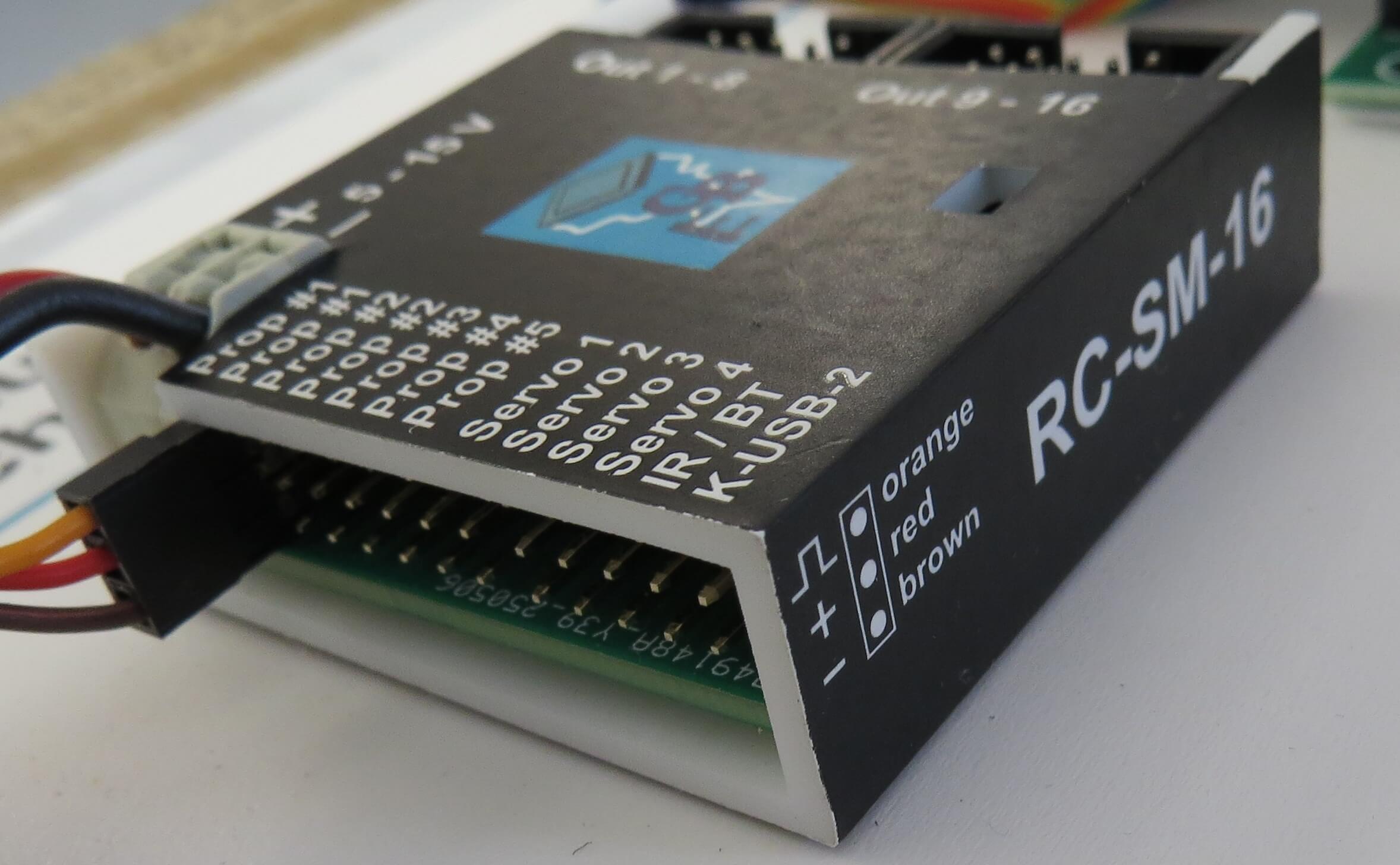 Das RC-SM-16 ist ein individuell programmierbares Schaltmodul für den RC-Modellbau. Das Schaltmodul verfügt über 16 Schaltausgänge und 4 Servoausgänge.