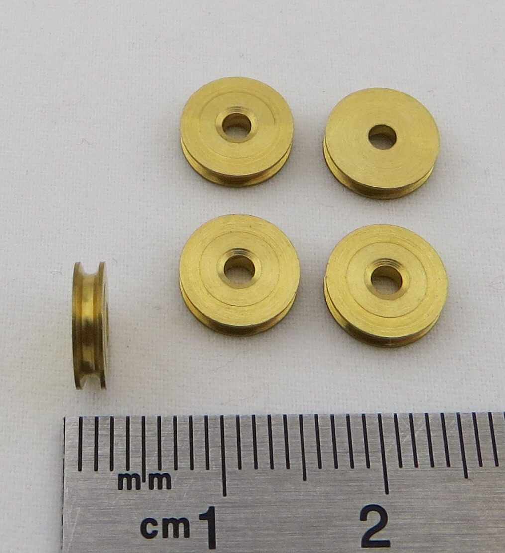 Seilrolle, Messing, 8mm Durchmesser Bohrung 2mm 5 Stück.