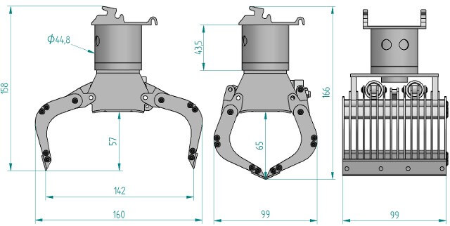 2 Hydraulikzylinder mit je 14kg Druckkraft öffnen und schliessen den Greifer.
