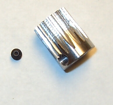 Stahl-Zahnrad Modul 0,5 18 Zähne Bohrung 5,0mm, 1 Stiftschraube extra lange Verzahnung. Außendurchmesser 10mm. (213950).