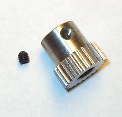 1x Stahl-Zahnrad Modul 0,5 24 Zähne. Bohrung 5,0mm, 1 Stiftschraube. (214019).