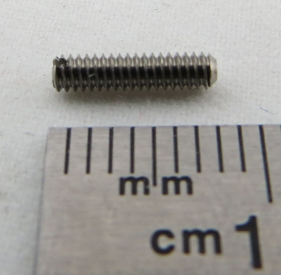 10 Stehbolzen/Gewindestift DIN551 A2 blank,Edelstahl, M2 x 8 mm mit Schlitz. Mit Schlitz und Kegelkuppe.