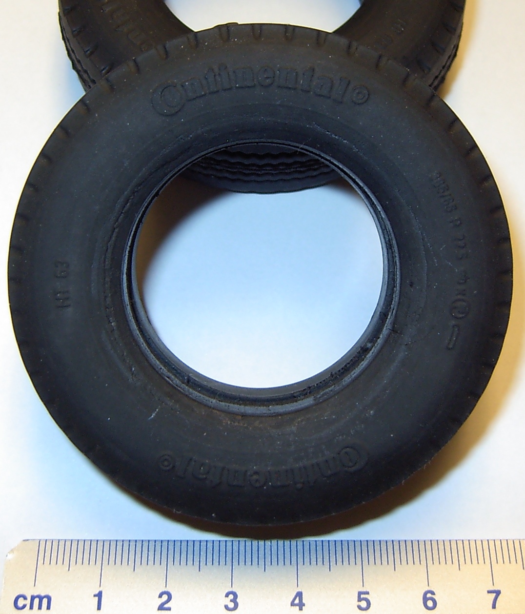 Strassen-Breitreifen Vollmaterial,1:WDC, CONTI 385/65R22,5.Außen 72mm,innen 39mm, Breite 25mm. HT63. Single-Breitreifen für Anhänger oder Vorderachse. 1 Stück.