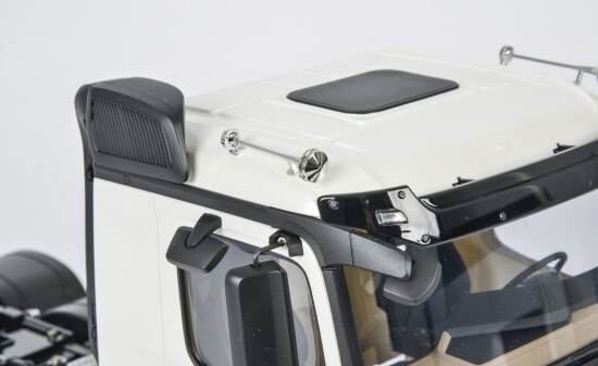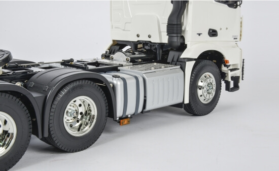 Wird der Bausatz zusätzlich mit dem Multifunktionsmodul MFC-03 ausgestattet, lassen sich die realistischen Licht- und Geräuschfunktionen des Arocs ebenfalls nachbilden. Zur Steuerung des Modells wird eine mindestens 4 kanalige Fernsteuereinheit benötigt. Weiterhin sind für den Fahrbetrieb noch ein 7,2V Fahrakku sowie ein Lenkservo notwendig.