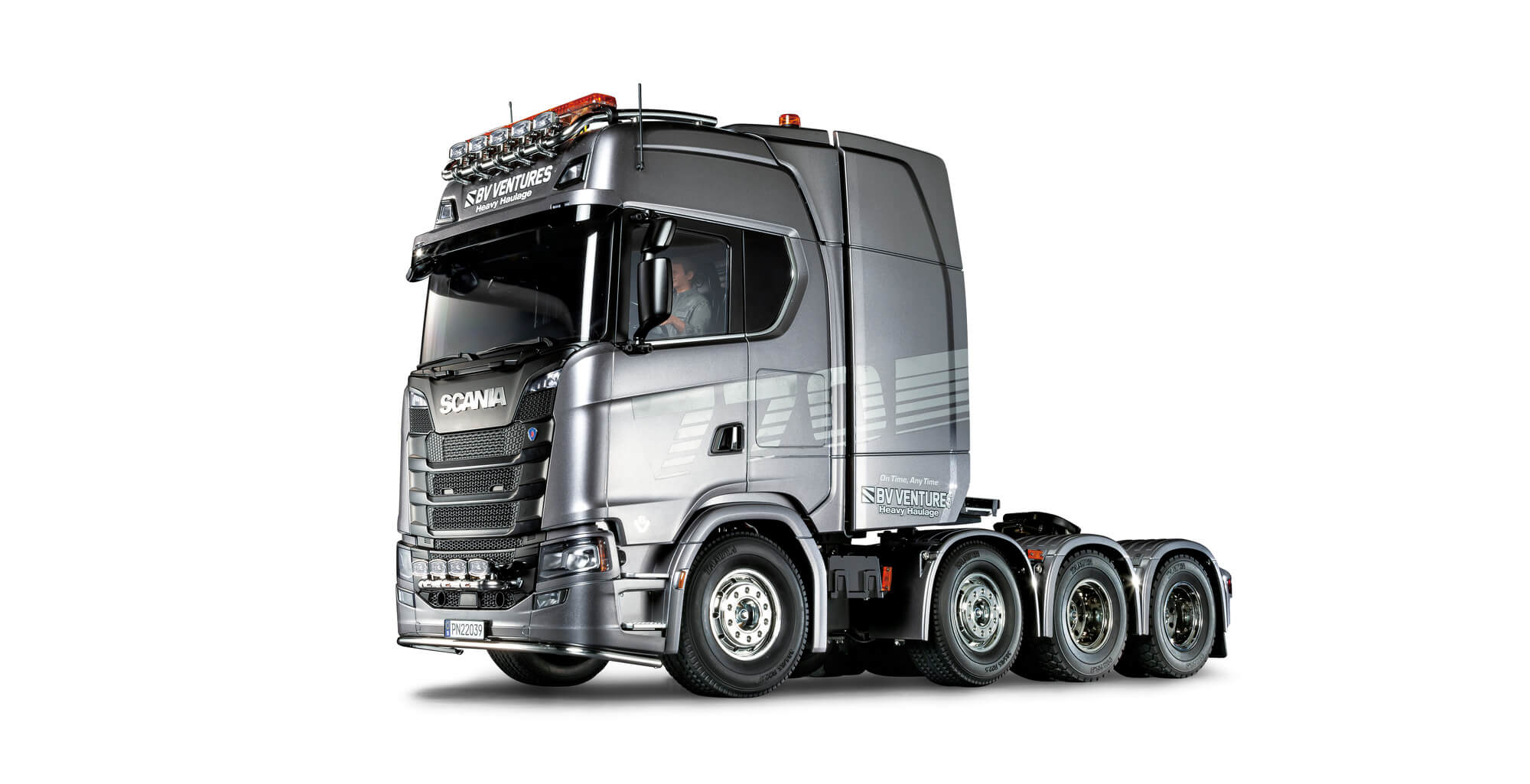 Die S-Reihe der Scanias bekommt Zuwachs. Tamiya bringt eine Schwerlastzug-Maschine. Das TOP-Modell aus der S-Reihe des schwedisch Herstellers Scania - den SCANIA 770S 8x4/4.