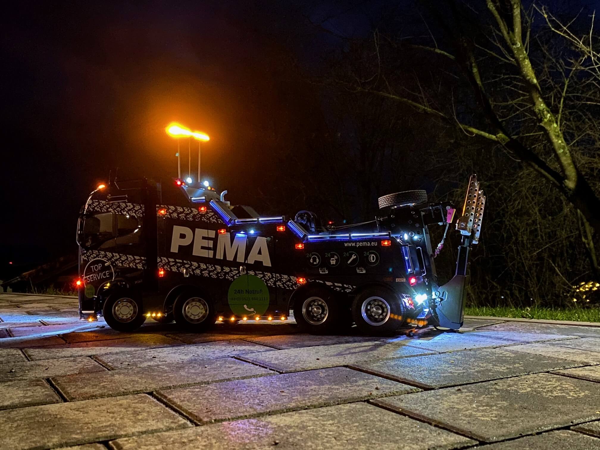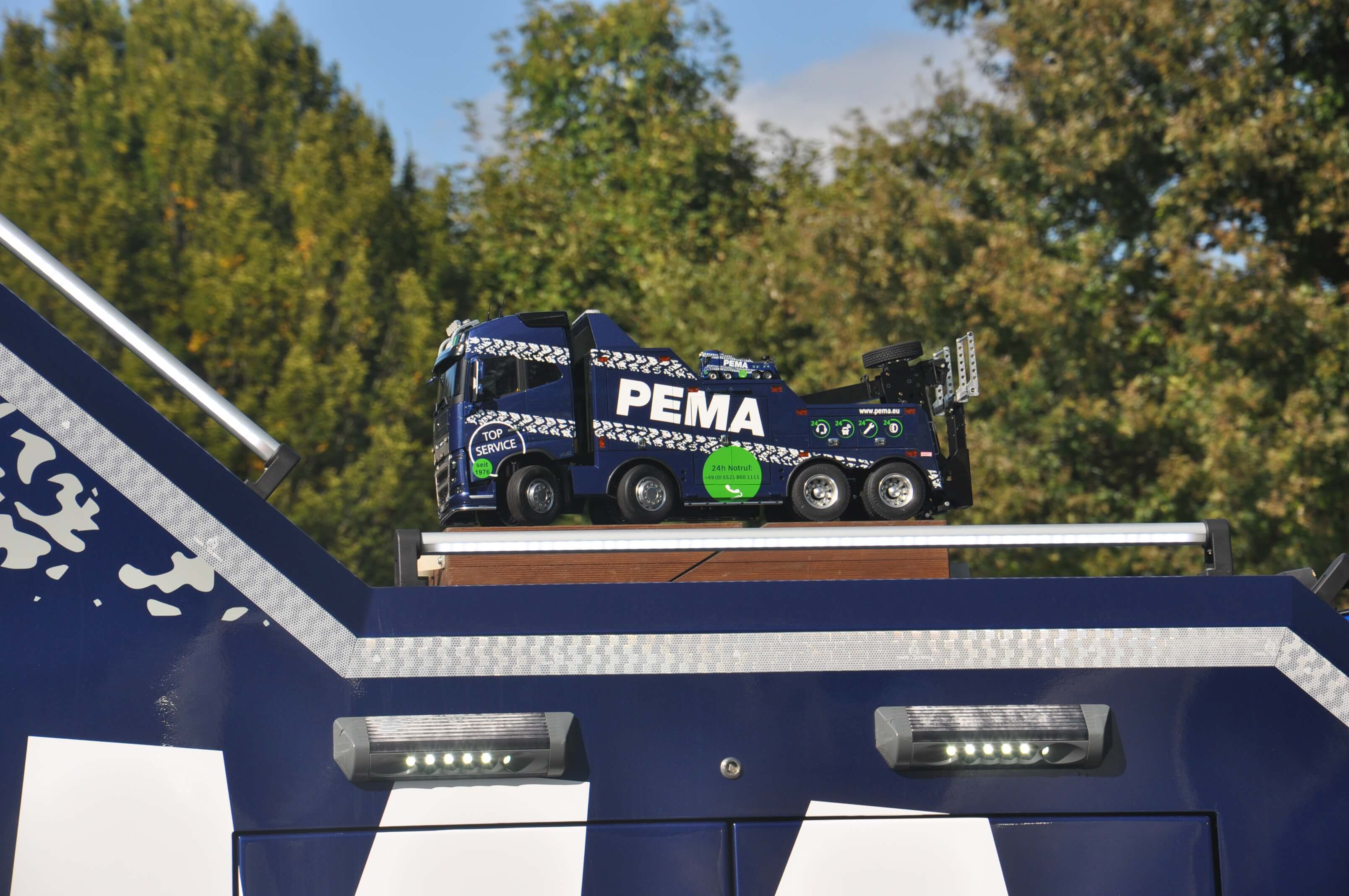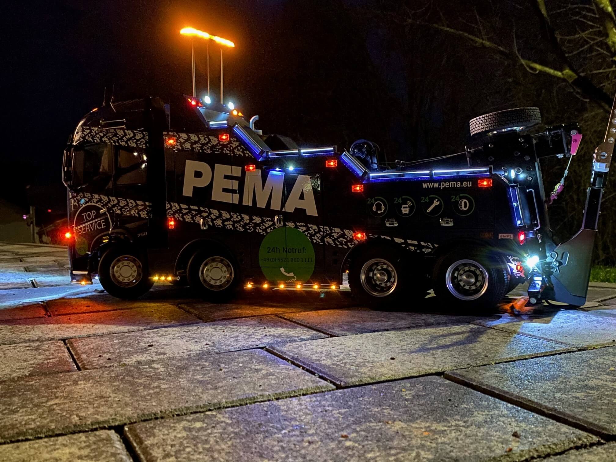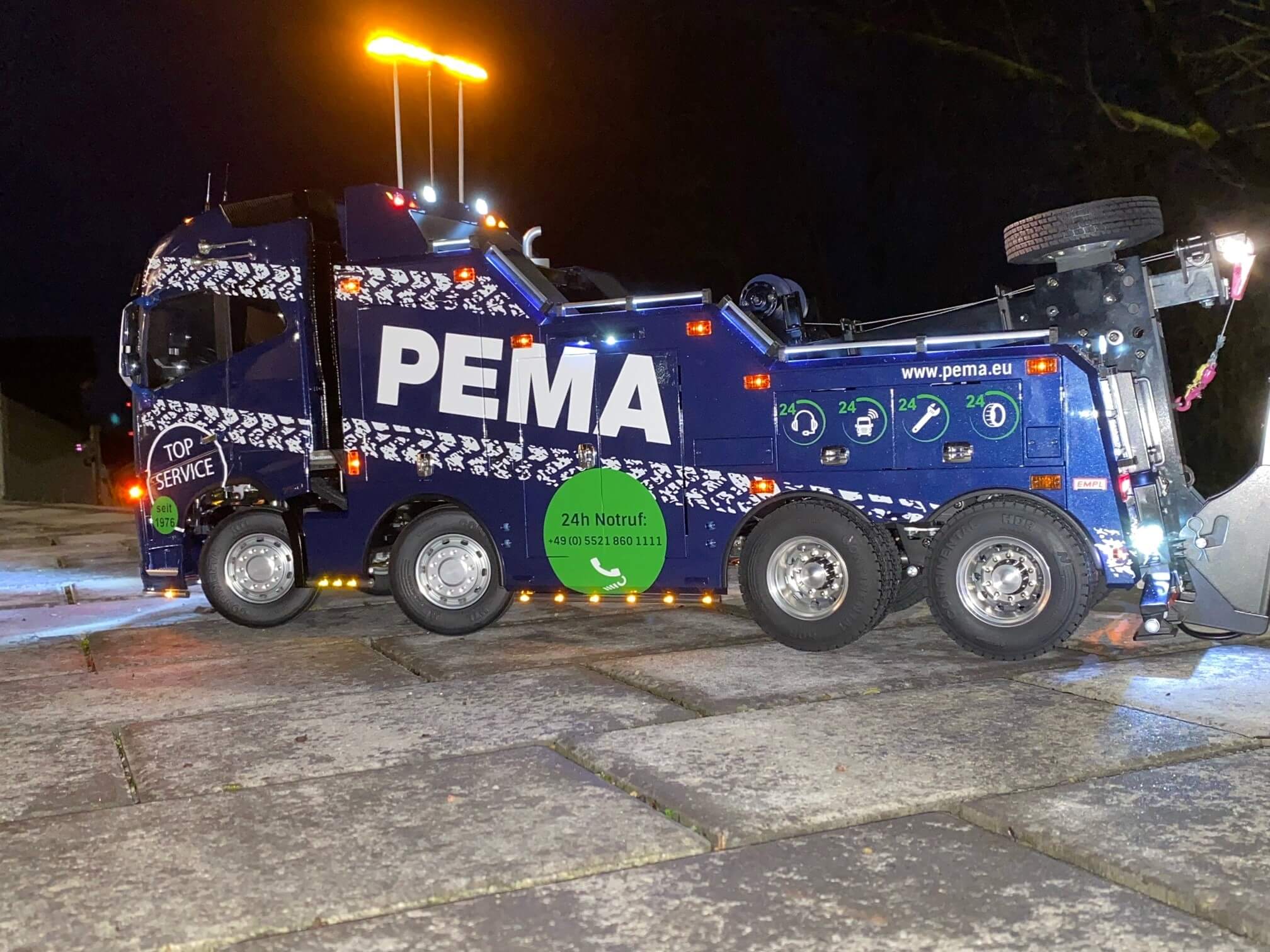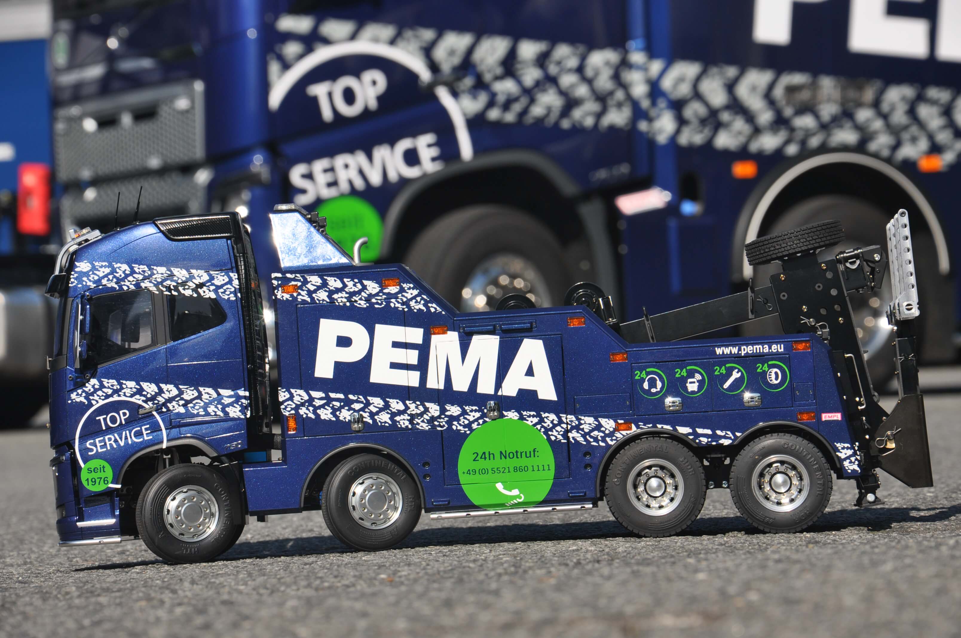Die Fotos mit dem blau lackieren "PEMA-Abschlepper" zeigen Anwendungs-Beispiele mit optionalem Zubehör und Ausstattungsmerkmale die nicht Bestandteile des Baukastens sind!