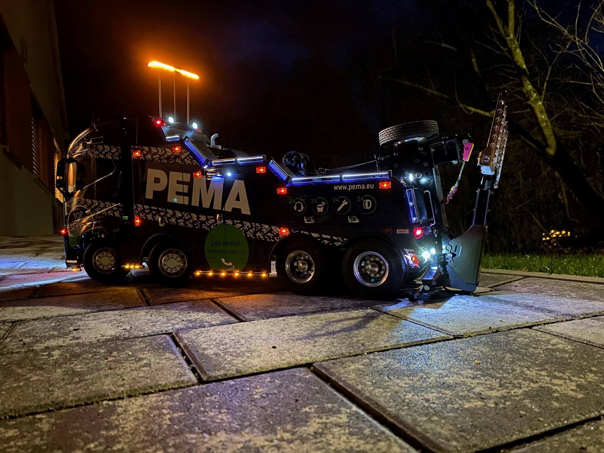 TAMIYA präsentiert mit dem Volvo FH16 Tow Truck den ersten Truck mit 4 Achsen und lenkbarer Doppelachse vorne. Das Chassis ist auf 8x4 umgebaut und bietet die ideale Basis für den Abschlepp-Truck.