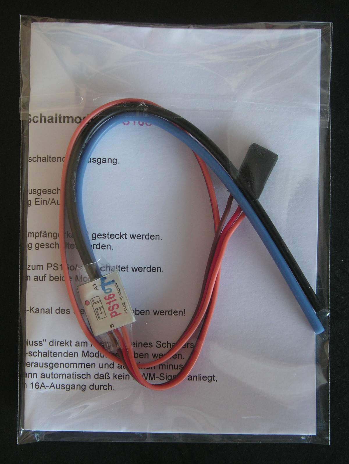 Tastschalter PS16oT mit 1x 16A-Ausgang 1x Ein/Aus-Funktion auf 1/2 RC-Kanal max. Spannung 20V. TASTEND! 13x15x2,5mm, CTI-Produkt.