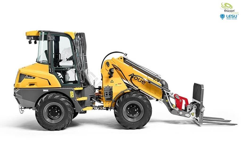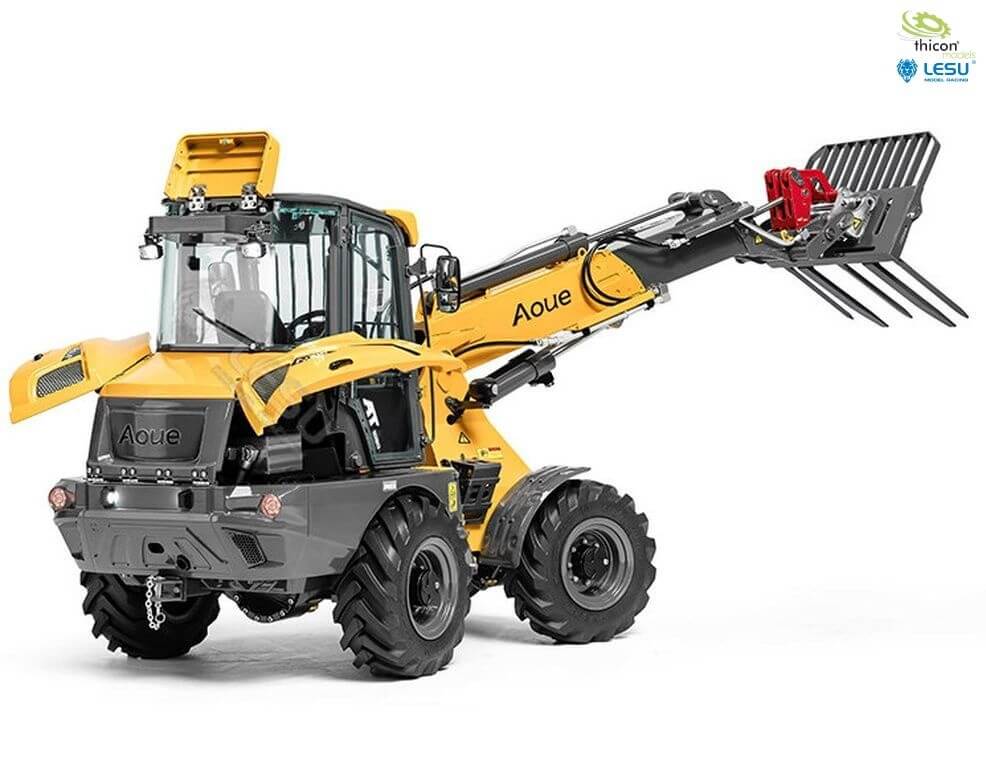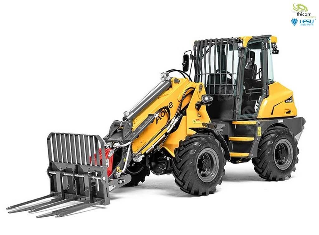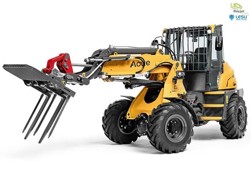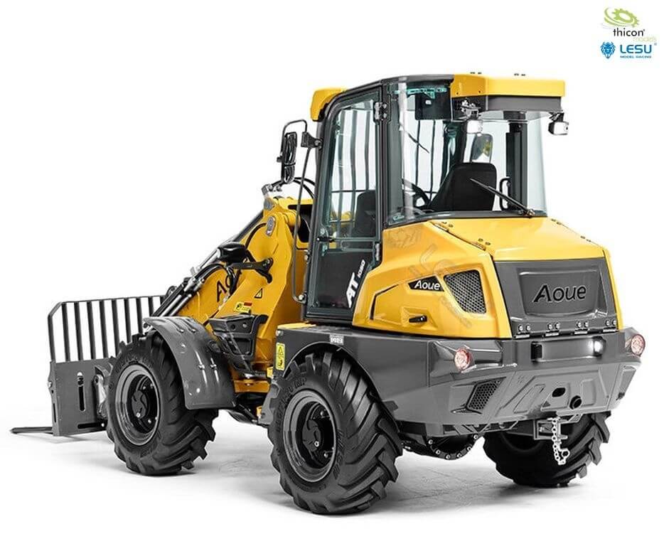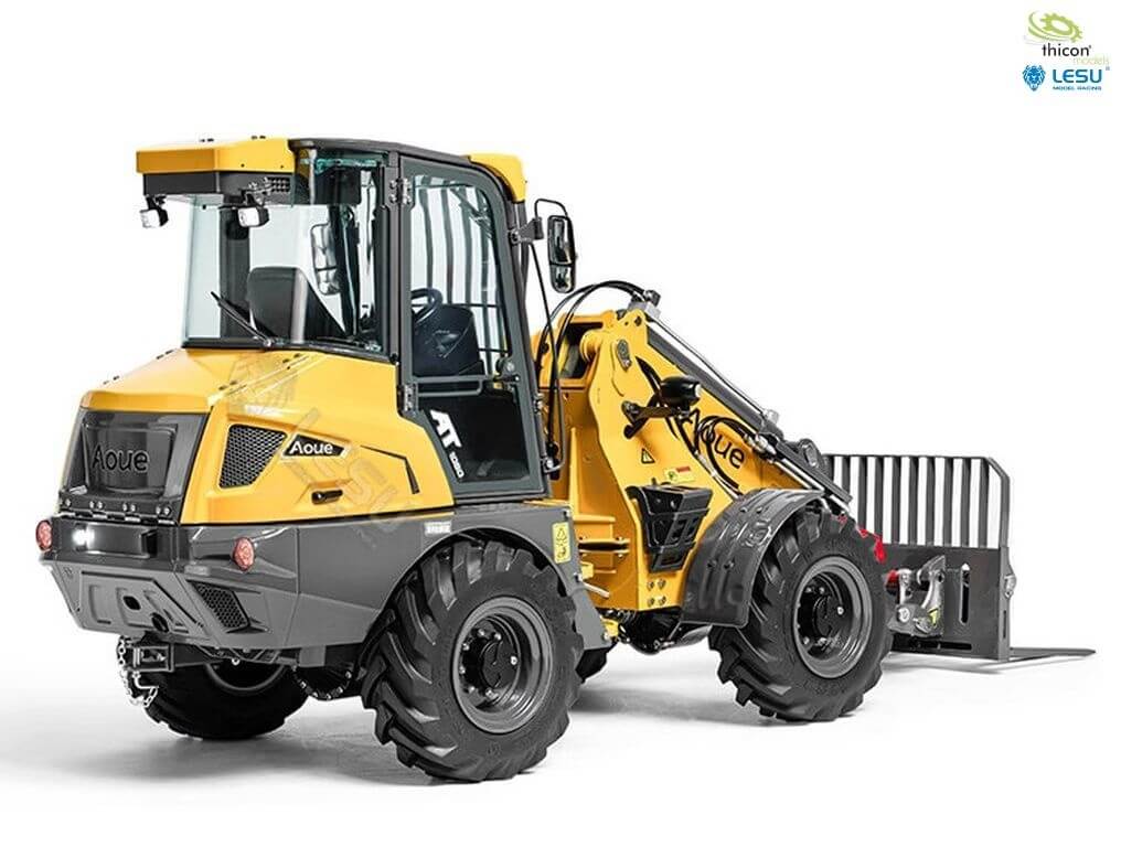 Modell fertig gebaut und lackiert mit FlySky ST8 Fernsteuerung inkl. Hydraulikzylinden, Brushlesspumpe, Servos und Fahrmotor mit Regler, Licht und Sound, Gabelschaufel.