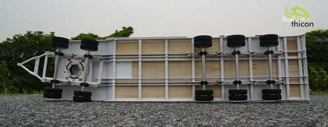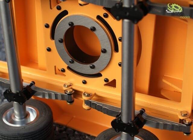 Aufgrund der 5 Achsen aus Edelstahl mit Kugellagern kann der Tieflader bis zu 50kg problemlos und reibungsarm transportieren.