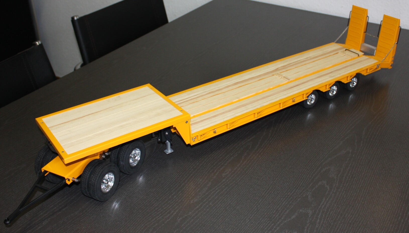 1x Tieflader-Anhänger mit Rampe. Bausatz eines 5-achsigen Anhänger- Tiefladers mit klappbaren Auffahrrampen. (24).