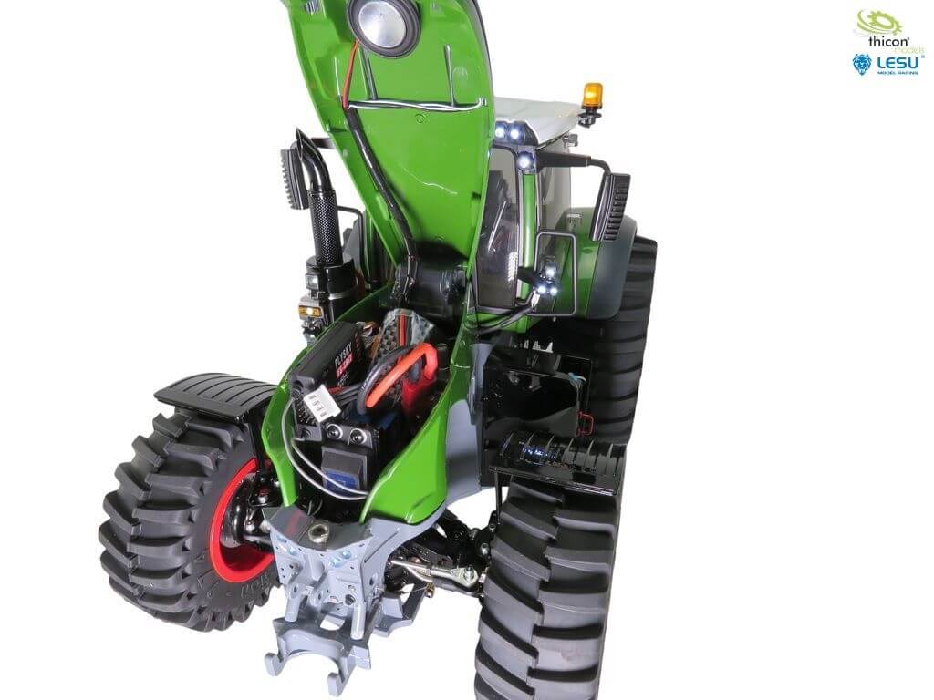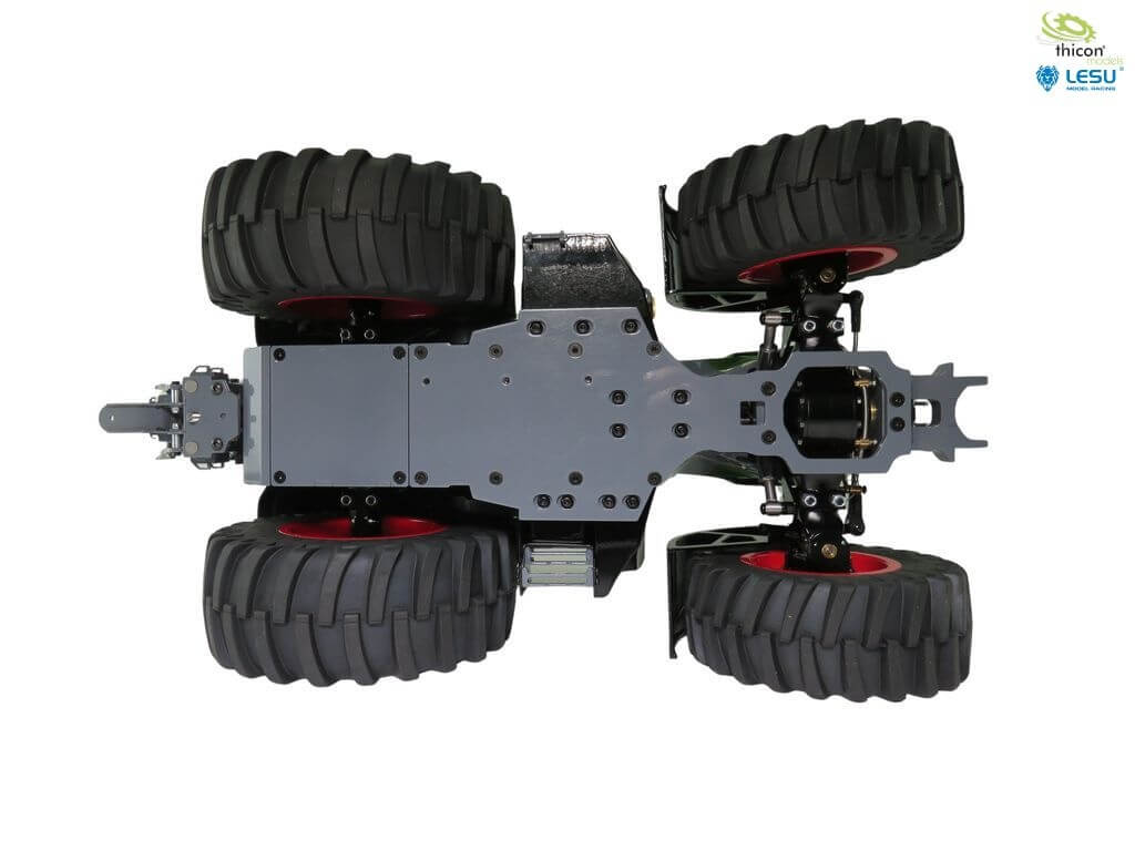 Alle Servos für Lenkung und Differenzialsperre sind bereits eingebaut. Auch ein Fahrtregler ist vorhanden. LED-Beleuchtungund Sound ist ebenfalls verbaut.