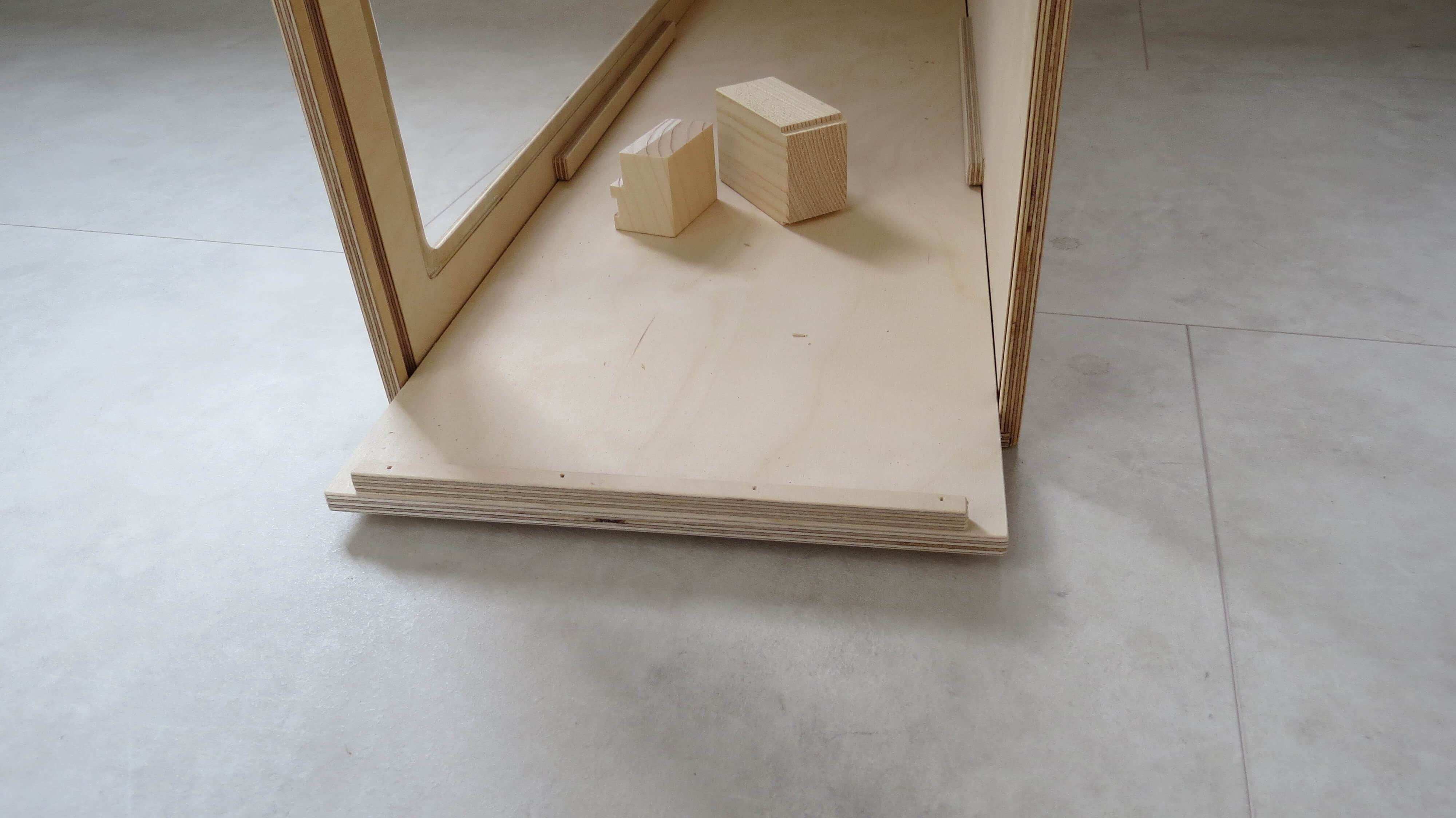 Auf dem bereits enthaltenen Schubboden können die beiliegenden Klötze montiert werden, die das Modell fixieren und anheben. Das Modell sitzt dann auf den Rahmenteilen auf, sodass es garantiert keine Standplatten bei den Reifen mehr gibt.