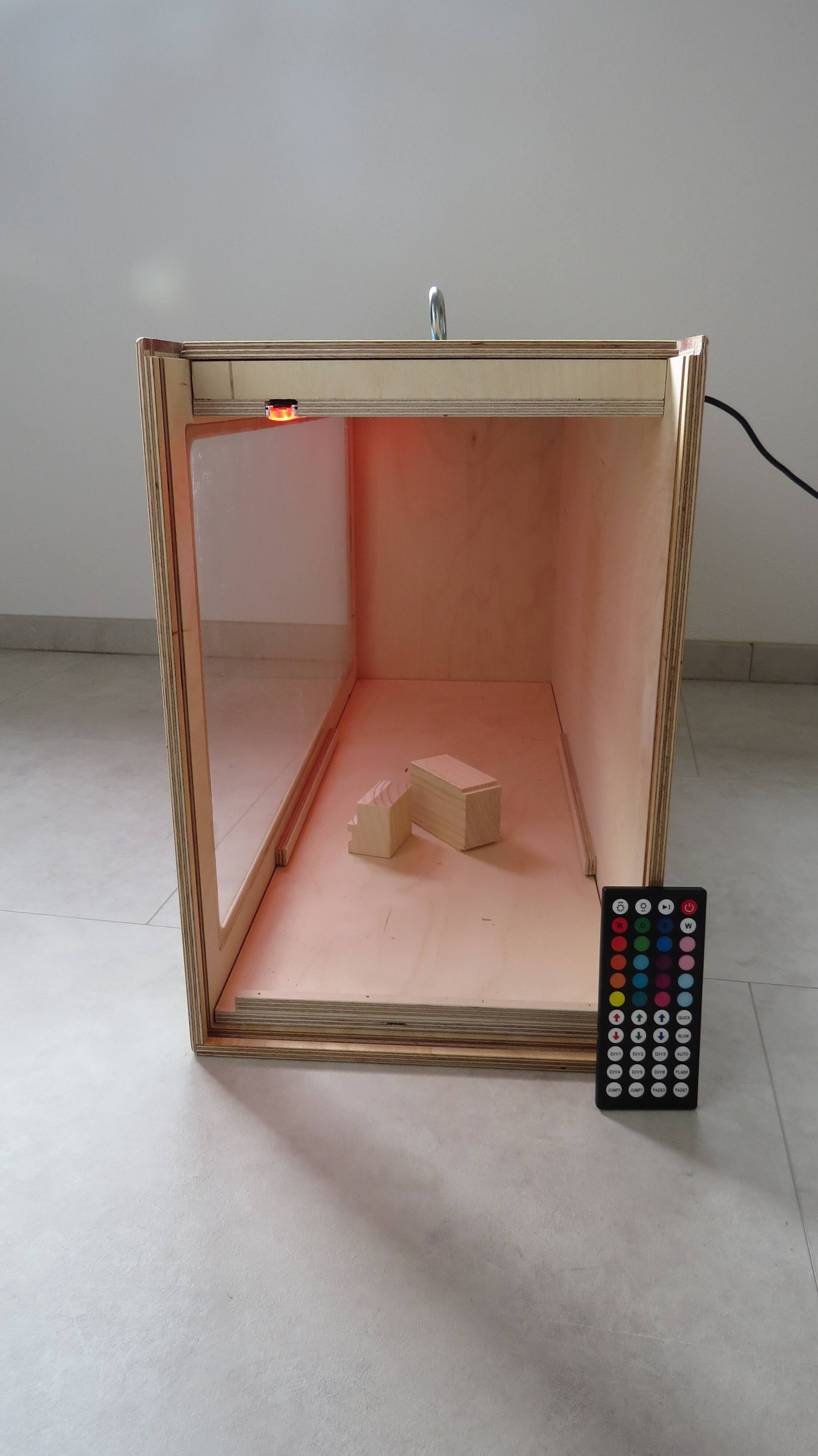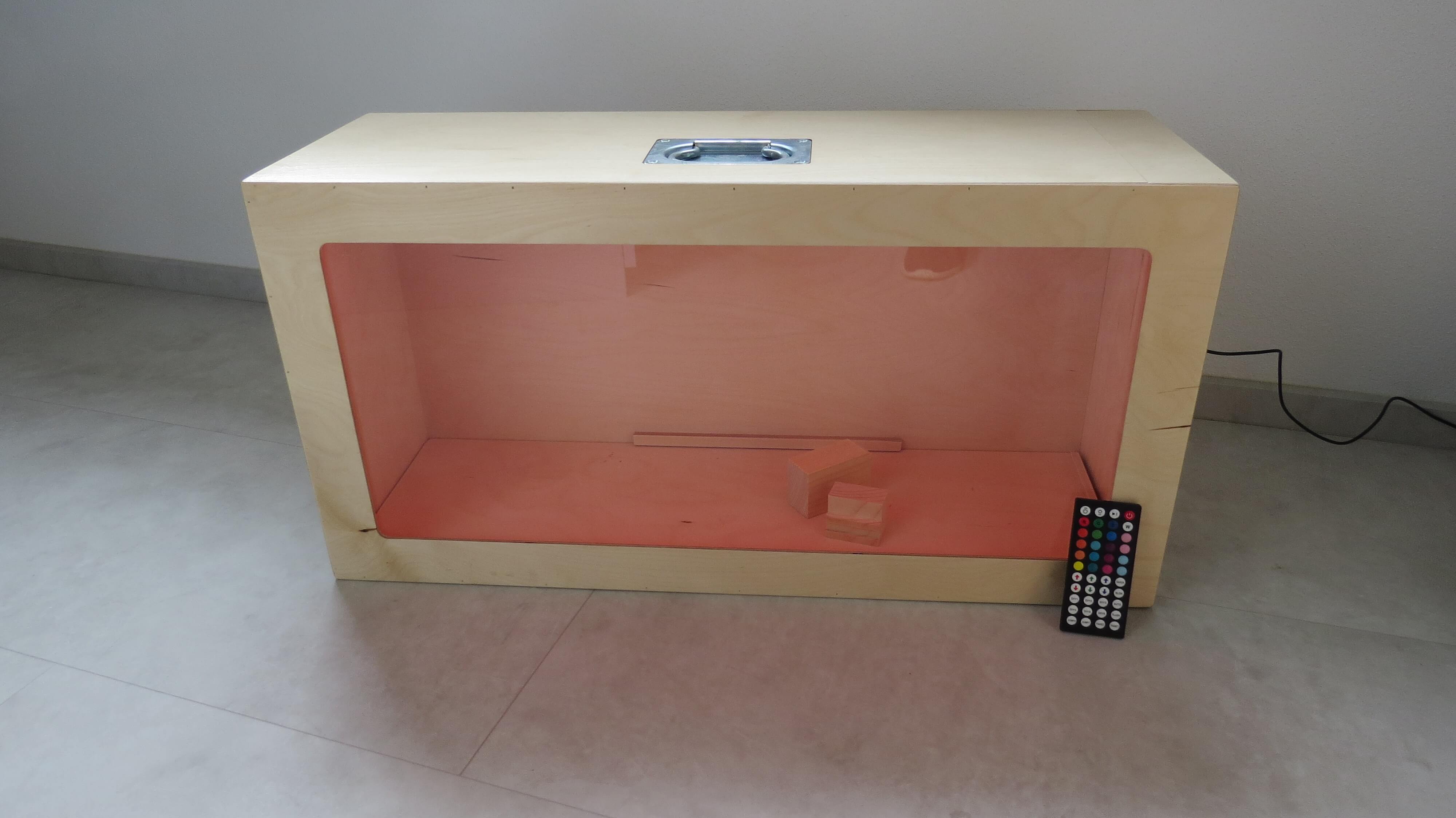 Mit klarer Plexiglas-Verglasung auf der Frontseite und integrierter LED-Beleuchtung (mehrfarbig).