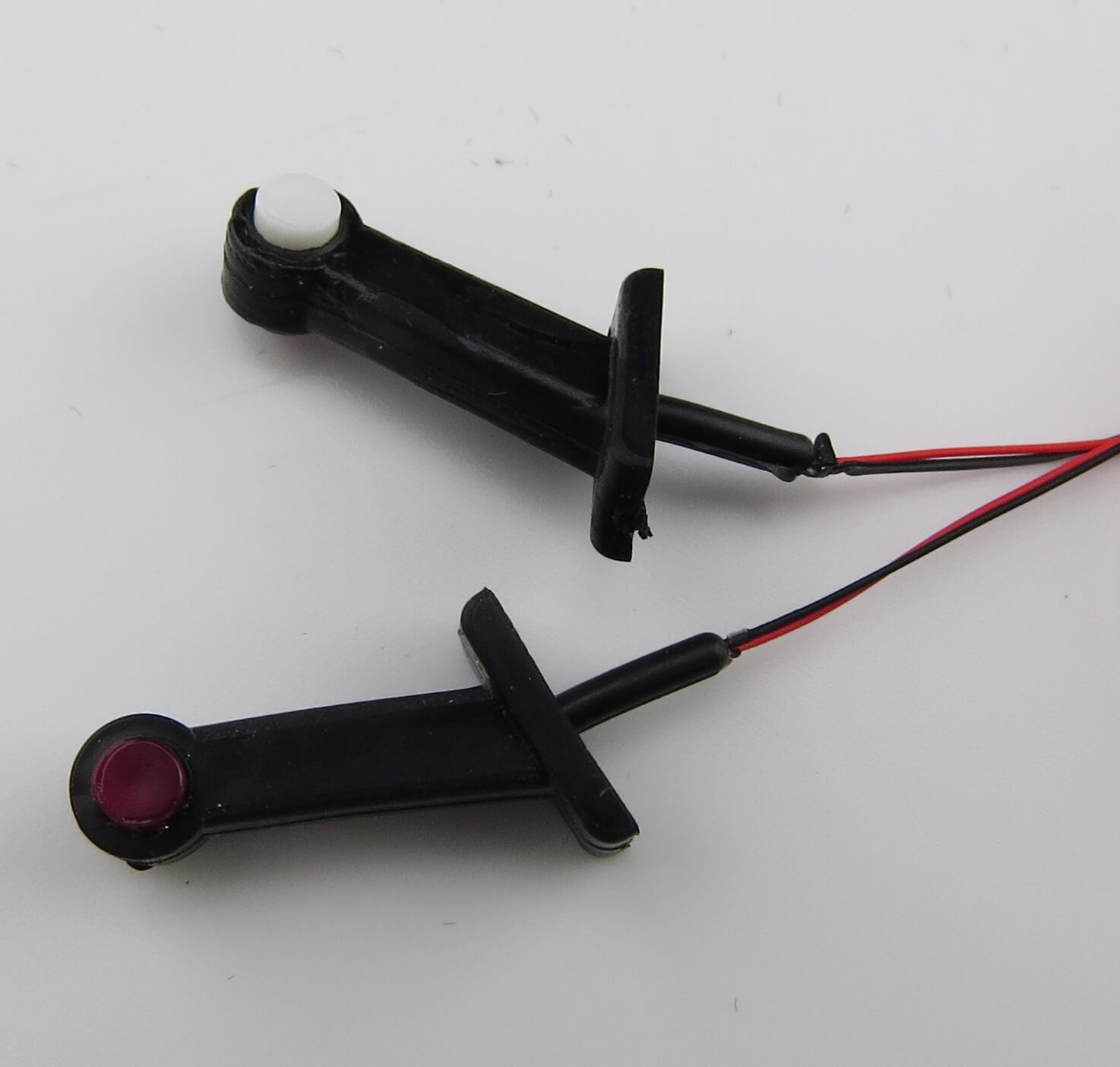 Verkerk Seitenbegrenzungs Leuchte aus Gummi mit weißer und roter Linse. Modell mit einer Kammer und langem Schaft. Fertig bedrahtet 7,2 - 12V. 1 Paar