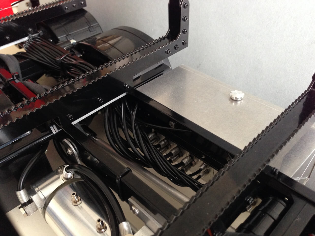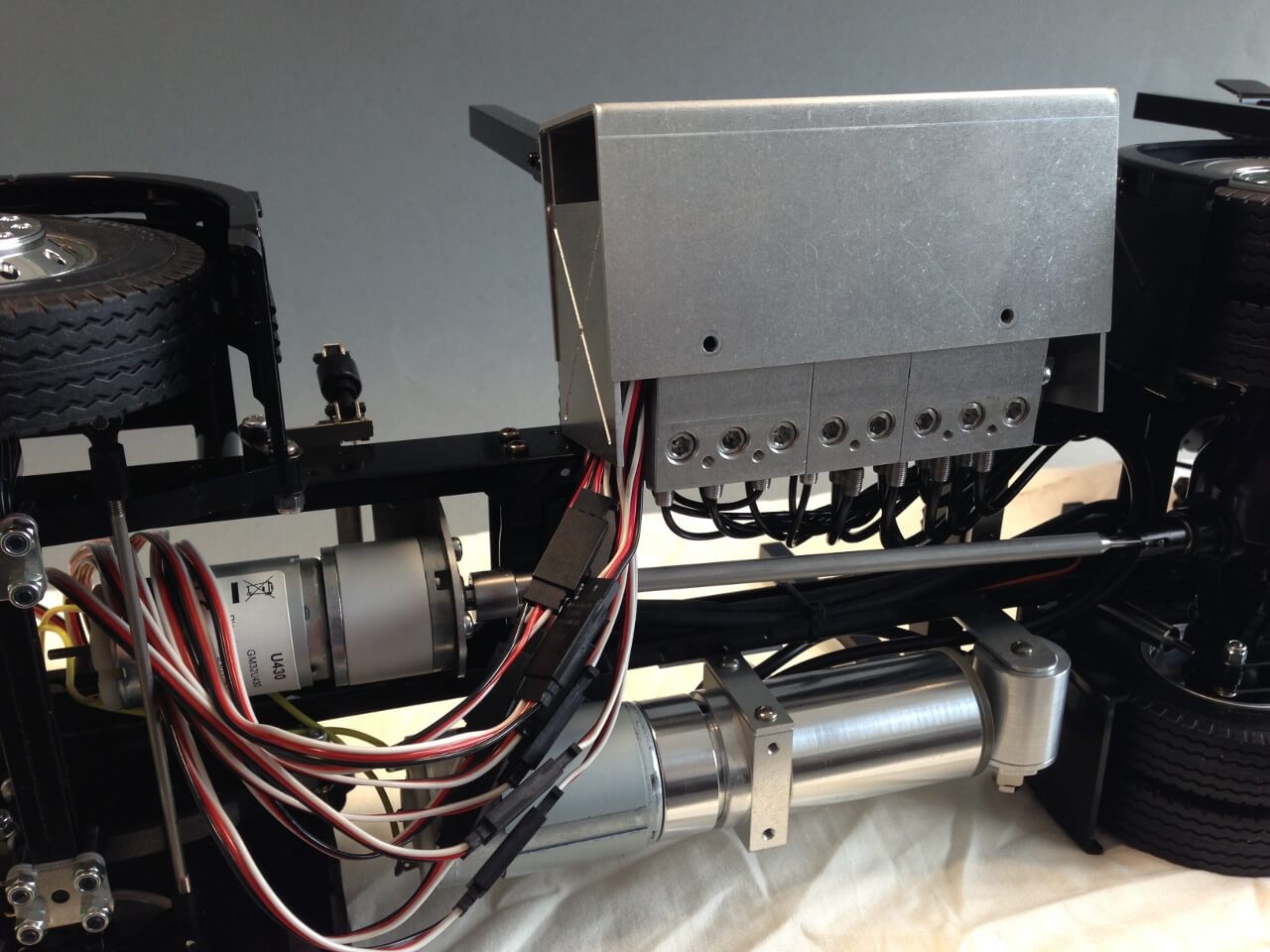 Zubehör zur Modell-Hydraulik von Leimbach. Tank-Verkleidung, um den seitlich am Rahmen angebrachten Ventilblock etwas gefälliger erscheinen zu lassen.