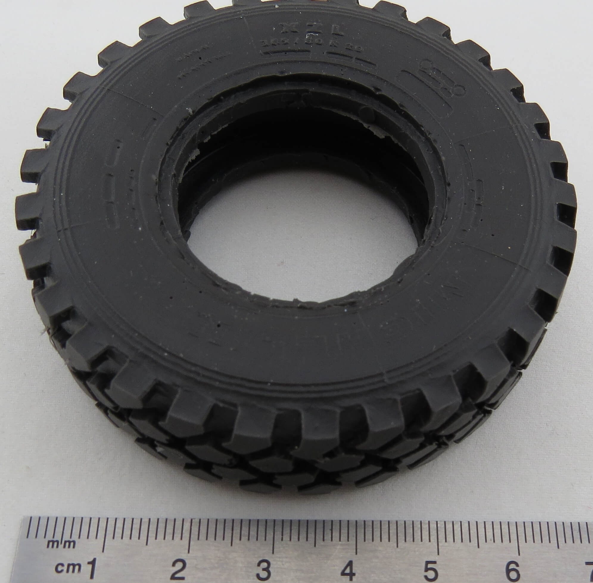 1 Vollreifen 365/80 R20 XZL, Shore 35. Da=70mm Di=35mm, 22mm breit. Passend zu Modell BW Dingo in M1:16.