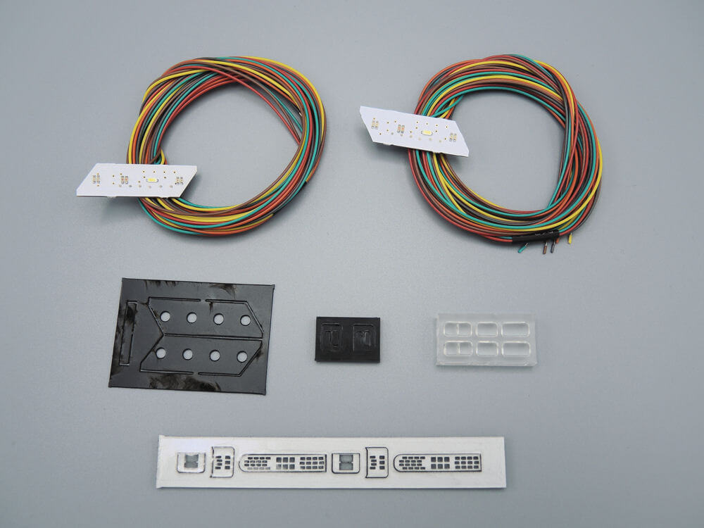 • Lieferumfang: 2 Platinen (1x links, 1x rechts), Lichtleiter, Streuscheiben