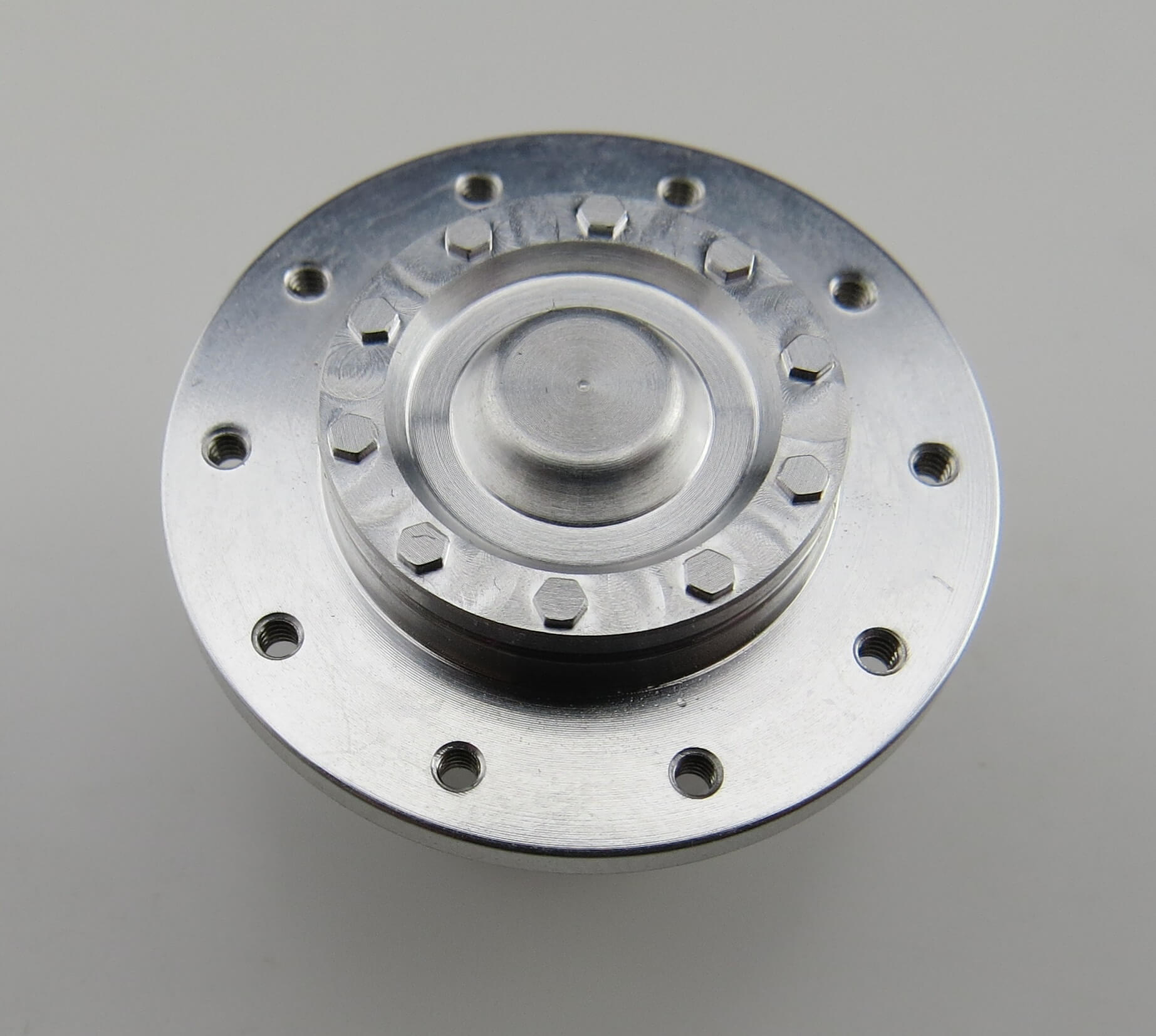 Vorderradnabe mit Deckel, Alu, Lochkreis 25mm, 10x M1,6-Gewinde. Für RÜST-Felgen. Nicht enthalten: 2 Kugellager 5x11x4 (Artikel 888). Tamiya-Größe. Lieferumfang: 1 Nabe mit Deckel.
