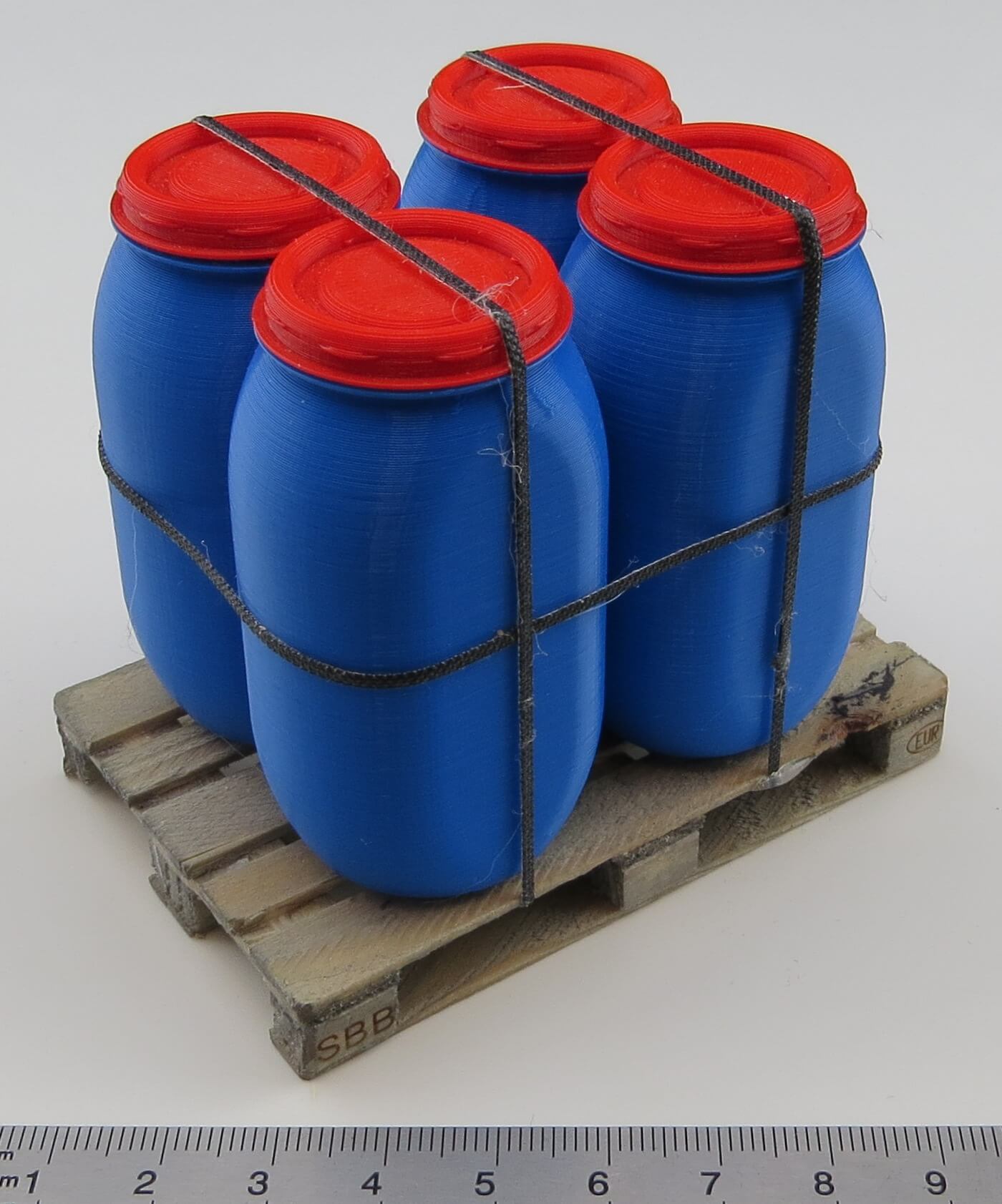 Produktinformationen "Weithalsfass 4x auf Euro-Palette 3D Druck, blau mit rotem"