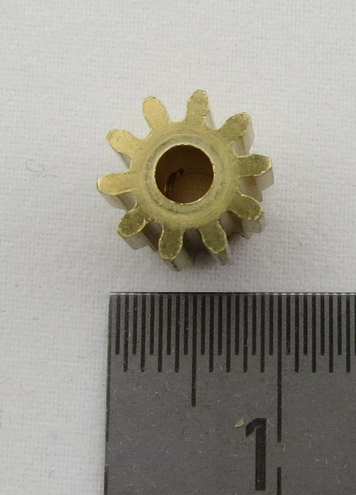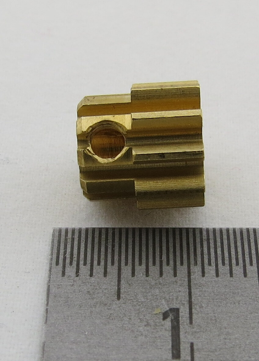 Zahnrad 10 Zähne für Tamiya Truck. Motorritzel 10 Zähne Modul 0,6. Für Truck-Antriebsmotor. Messing. Durchmesser 9,5mm. Länge 9mm. Bohrung 3,2mm.