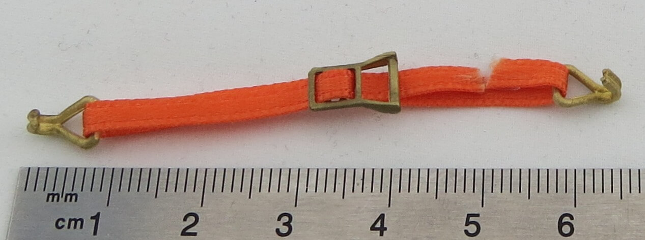 1 Zurr-Set aus 4 grossen Doppelhaken,MS- Feinguss, Zurrband und Spann-Griffen, ca. 6x9mm. Kleine Bauform.Die Haken sind mit mäßigen Zugkräften belastbar. Passend zum Tamiya- und Wedico-Maßstab.